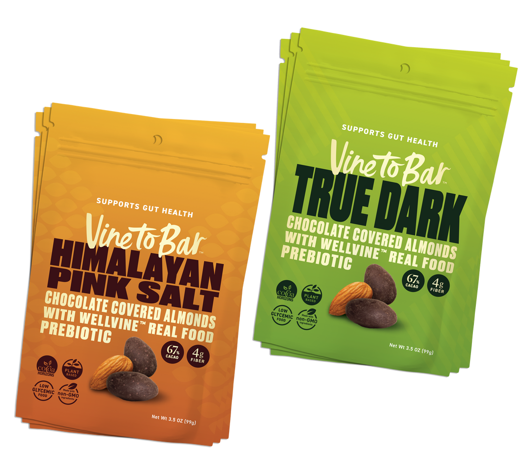 For years Vine to Bar founders, Barbara Banke and Peggy Furth, have worked alongside the USDA Agricultural Research Service and UC Davis researching the potential health benefits of pressed chardonnay grapes. They developed WellVine™ – a real food prebiotic that feeds the good bacteria in our microbiome and suppresses the non-beneficial.