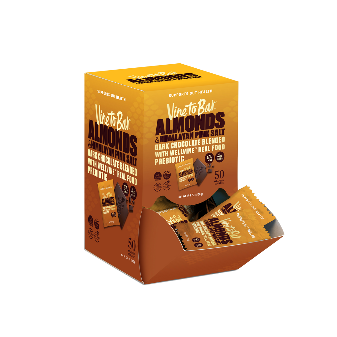 Almonds and Himalayan Pink Salt Dark Chocolate Squares - 50-Ct Display Box