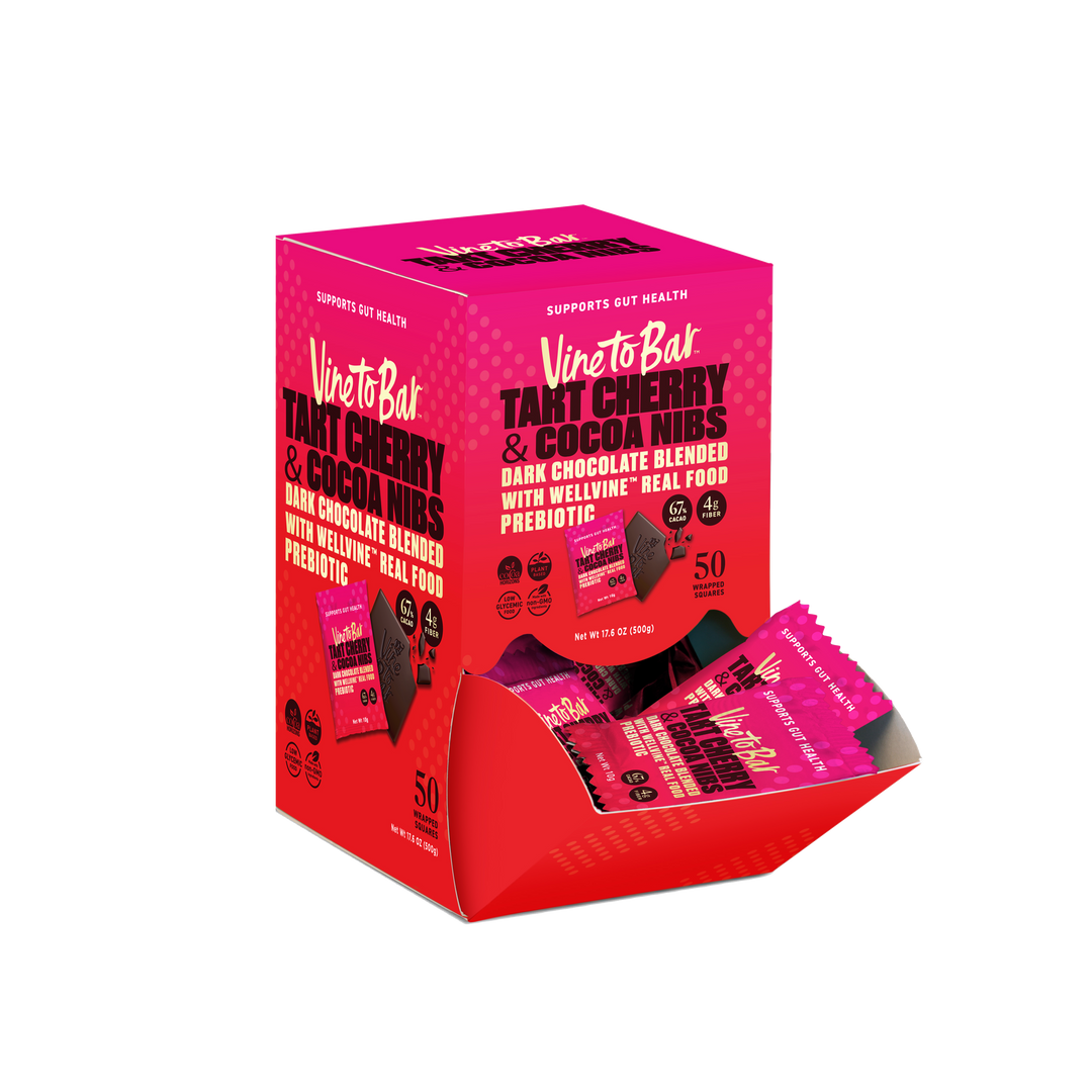 Tart Cherry and Cocoa Nibs Dark Chocolate Squares - 50-Ct Display Box