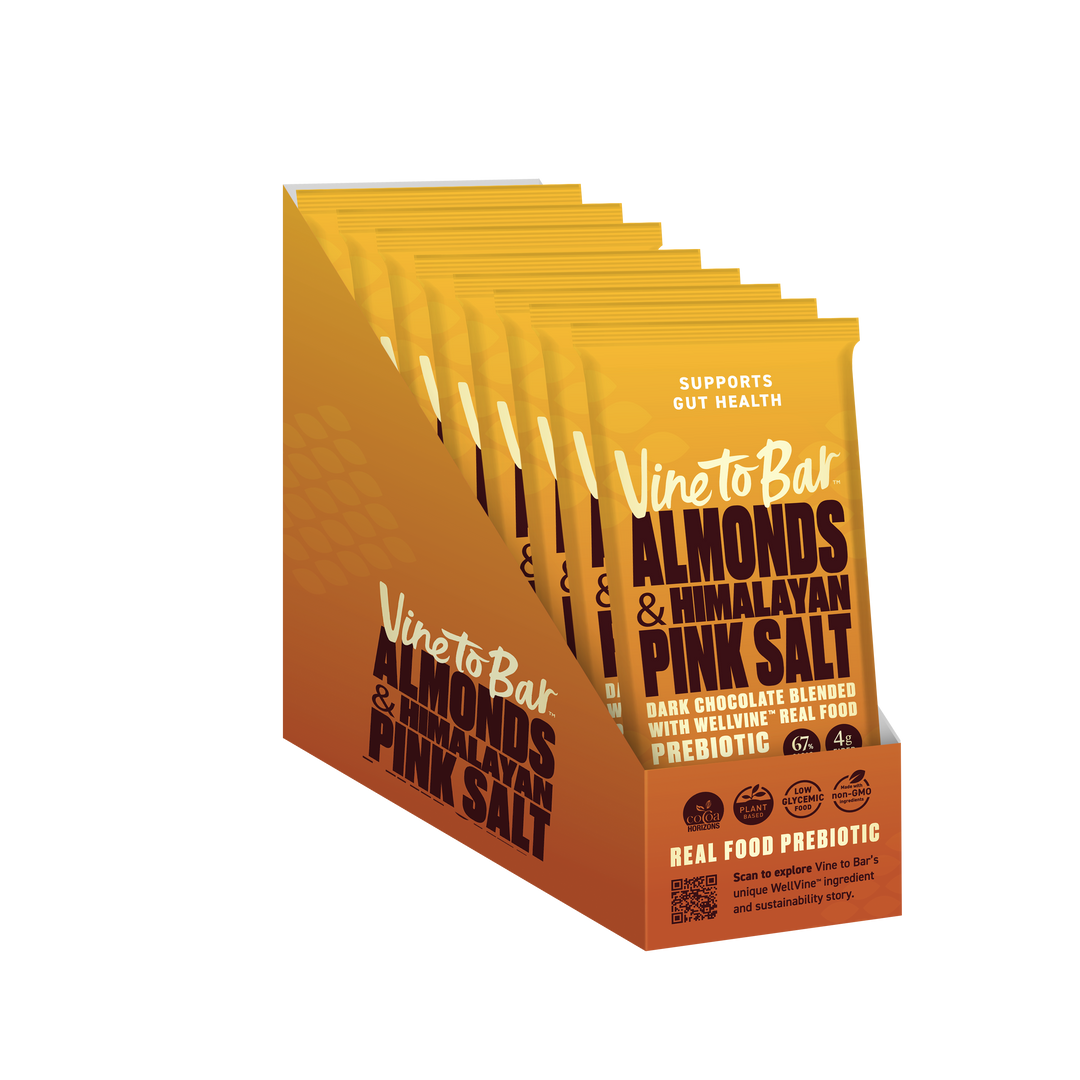 Almonds and Himalayan Pink Salt Dark Chocolate Bars - 12-Ct Display Box