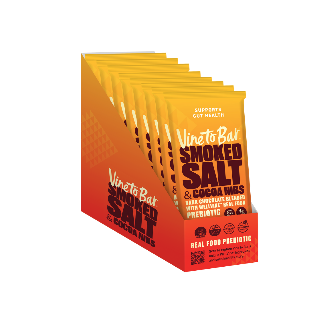 Smoked Salt and Cocoa Nibs Dark Chocolate Bar - 12-Ct Display Box