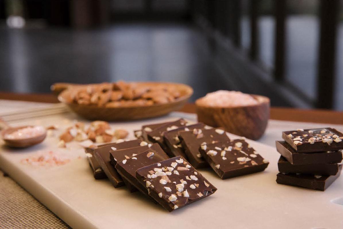 Our chocolate is made with 65% cocoa but don’t let that alone determine if you will try our chocolate. The addition of Chardonnay Marc (15% of the chocolate) cuts the bitterness of the dark chocolate and adds a fruity note otherwise not found. It creates a taste quite unique