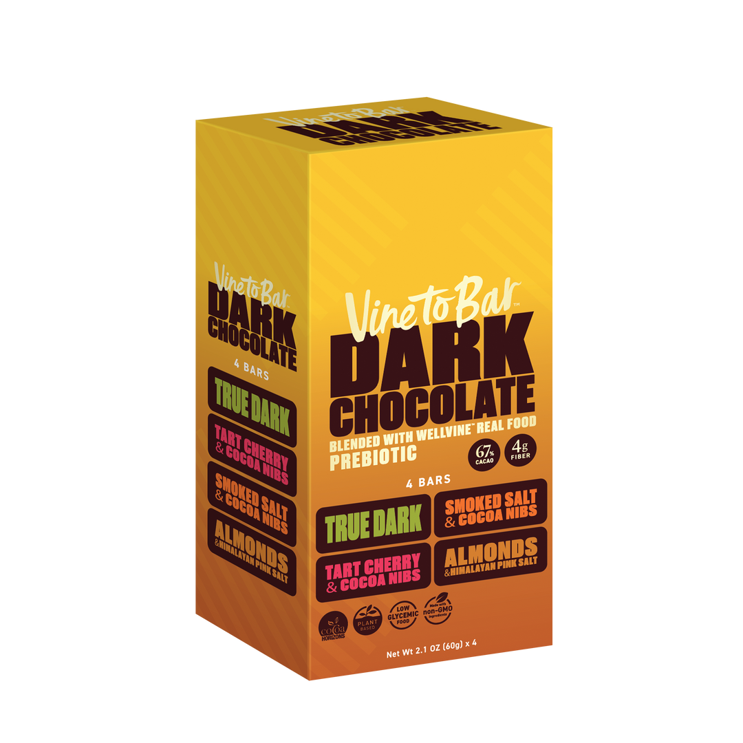 Expertly blended into the finest rich, dark chocolate - taste our 4 flavors. True Chocolate, Almonds with Himalayan Salt, Smoked Salt and Cocoa Nibs, and Tart Cherry and Cocoa Nibs.